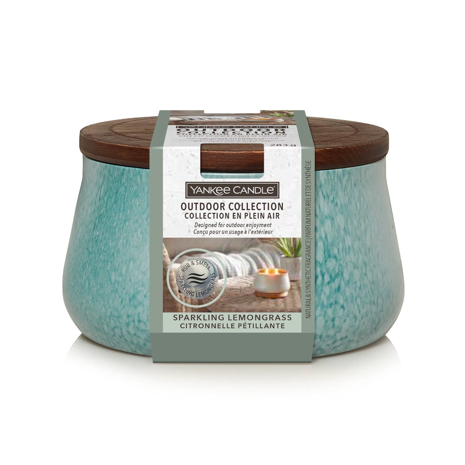 La collezione, pensata appositamente per gli spazi esterni, presenta fragranze create dagli esperti di Yankee Candle® e miscelate con citronella e altri oli essenziali. Il contenitore in latta è decorato da un coperchio in legno naturale che può essere utilizzato come base.