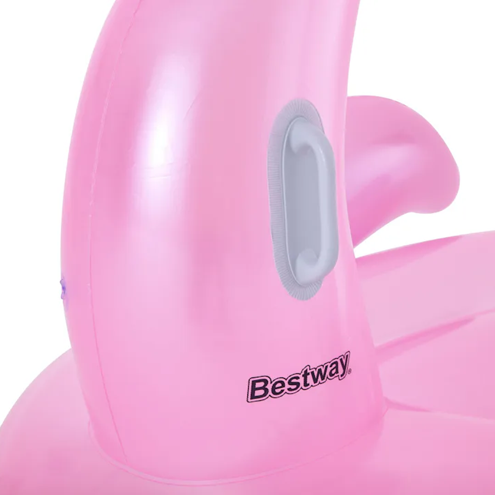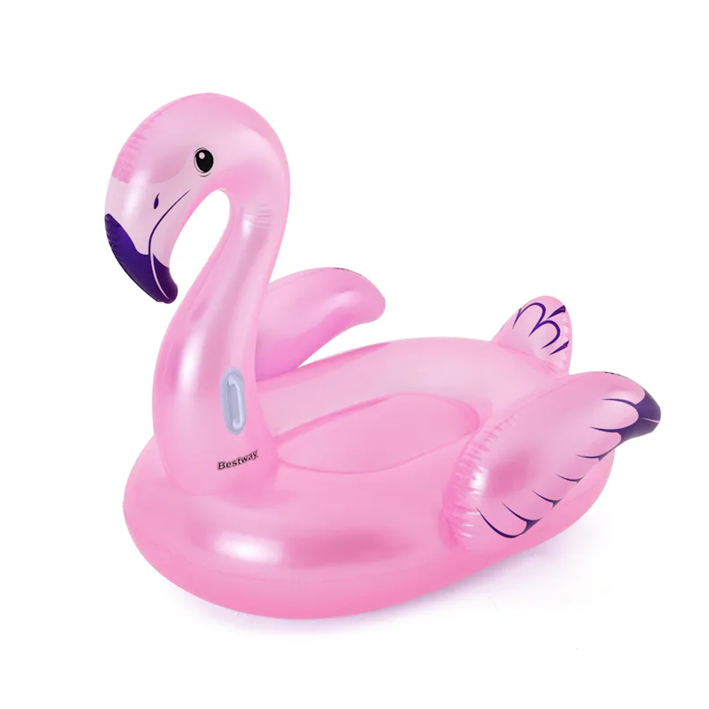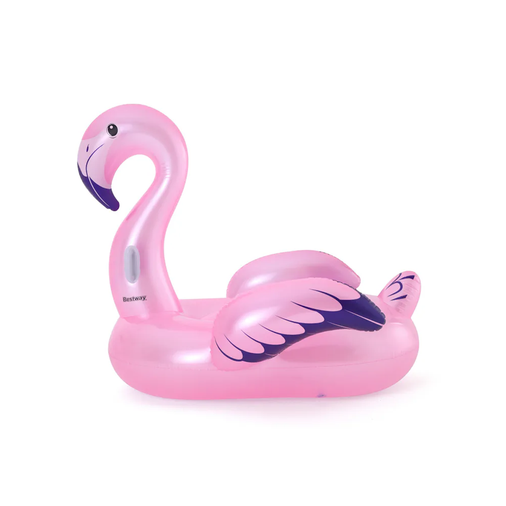 Un sontuoso, grande fenicottero rosa che più rosa non si può (!) galleggiante cavalcabile, dal lungo collo, becco ricurvo e simpatiche alette, della linea Float'n Fashion di Bestway a completa disposizione per allietare il tempo di grandi e piccini passato al mare o in piscina.