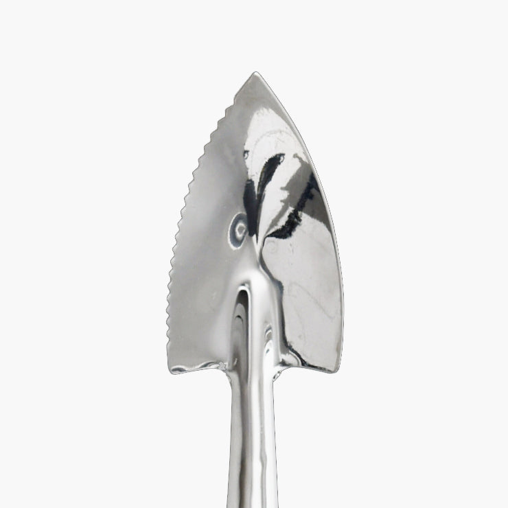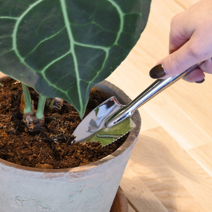 Questa paletta per interni è ideale per piantare piante e fiori. La pala è realizzata in acciaio inossidabile ed è dotata di un bordo seghettato per tagliare le radici.