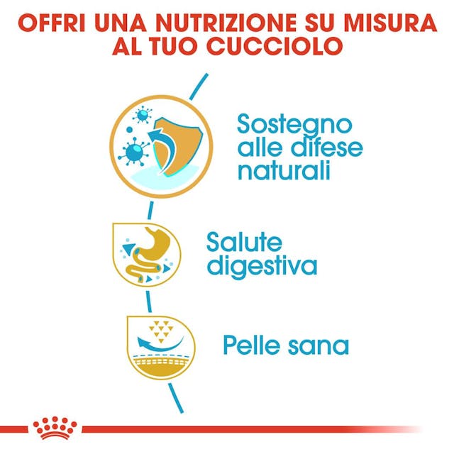 Supporto alle difese naturali La crescita è un periodo essenziale nella vita del tuo cane: è la fase dei grandi cambiamenti, delle scoperte e dei nuovi incontri. Durante questo periodo chiave il sistema immunitario del cucciolo si sviluppa gradualmente. French Bulldog Puppy aiuta a sostenere le difese naturali del tuo cucciolo grazie ad un complesso sinergico di antiossidanti contenente vitamina E.